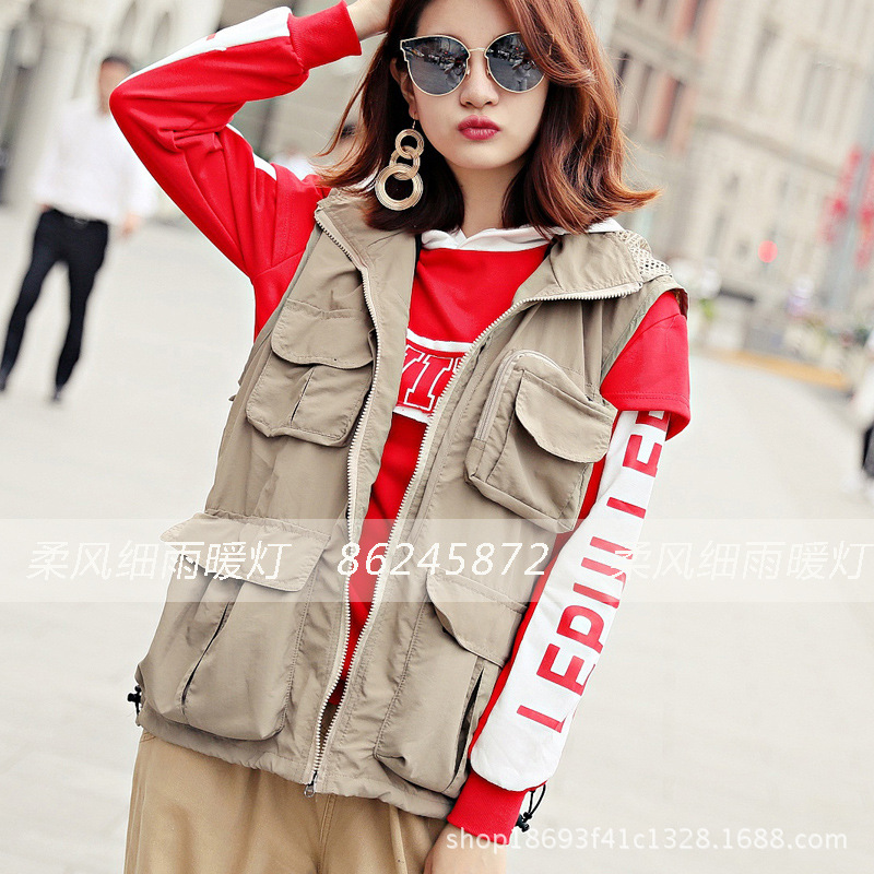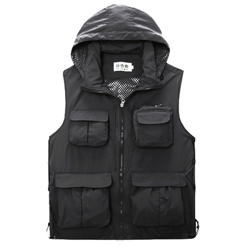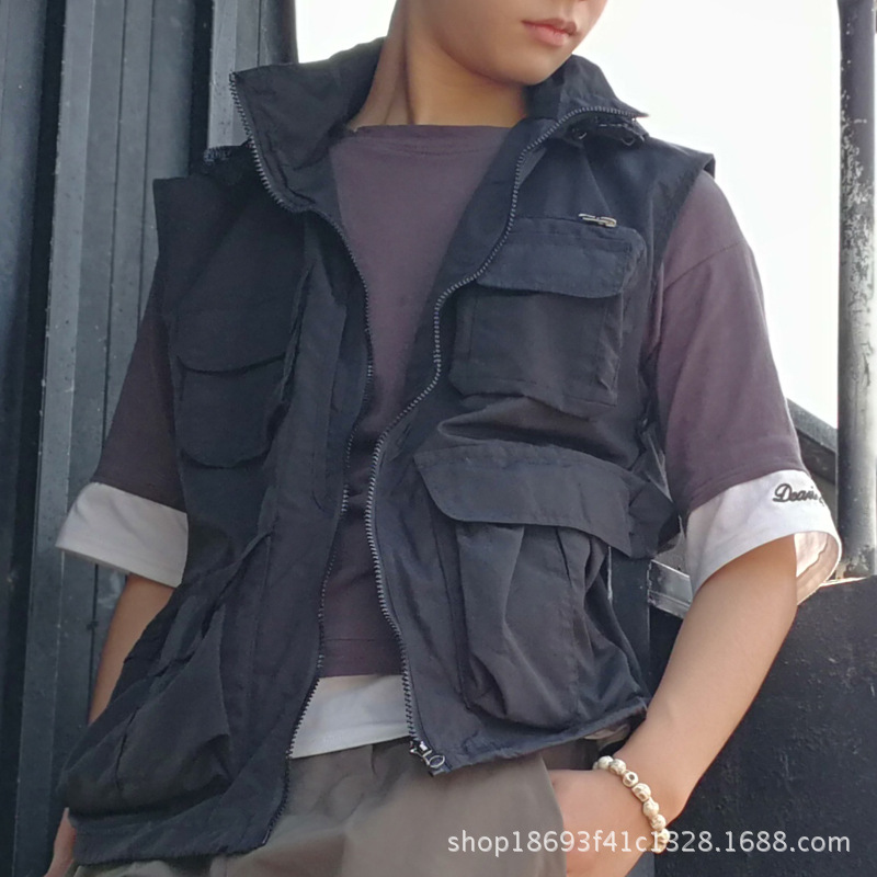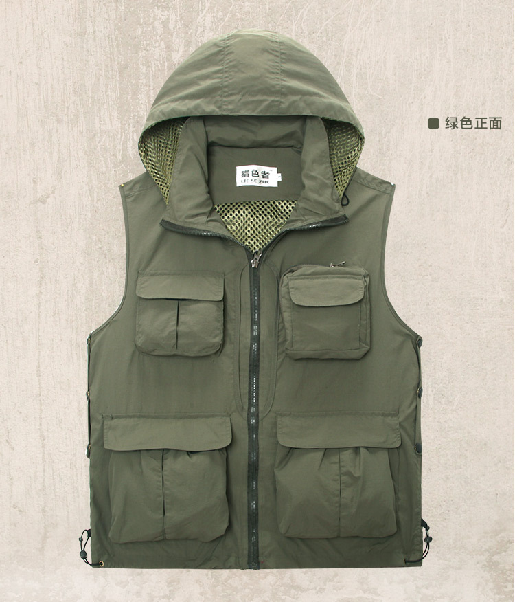 Spring and autumn men's outdoor thin section multi-pocket casual photography hooded vest vest waistcoat fishing vest custom