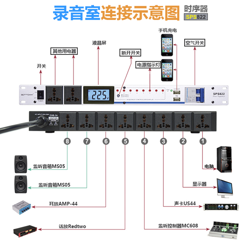 Gottomix song map SPS822 Recording shed timing power 10-way chronograph Universal Socket Stage Filtering-Taobao