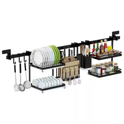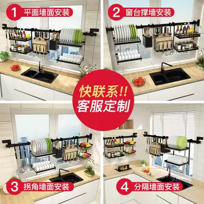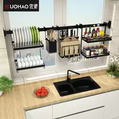 Black kitchen drain bowl rack Stainless steel windowsill shelf Above the sink window wall-mounted storage shelf without punching