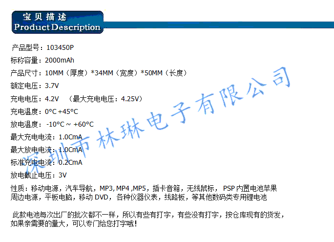 103450 battery 3 7v polymer lithium battery 2000MAH small pudding early education story machine blue baby applicable