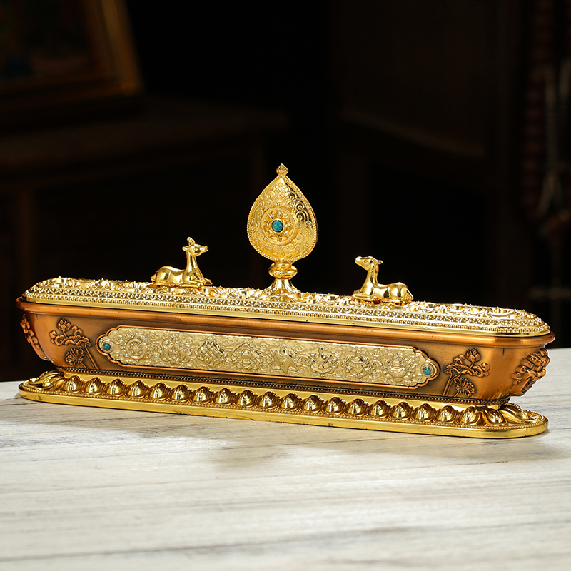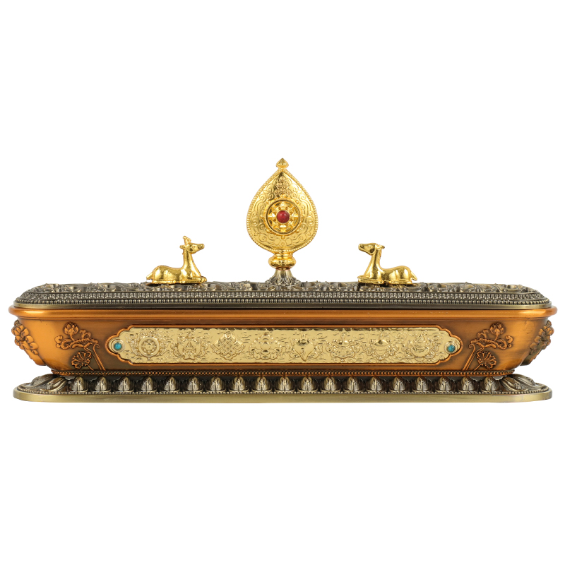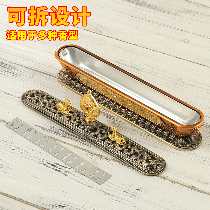 Tibetan Tantric incense burner for Buddha Eight auspicious double Deer Falun Green Lion head lying incense box Household indoor line aromatherapy stove