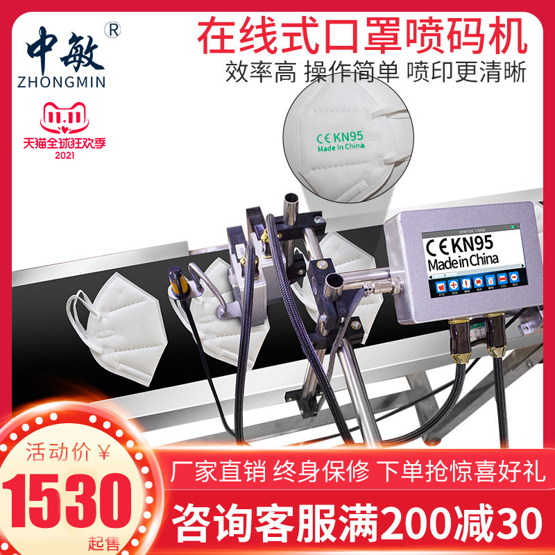 China min 1002 factory mask spray code machine fully automatic online type mask machine intelligent assembly line spray code machine beating production date beating price small laser marking machine printing machine marking machine