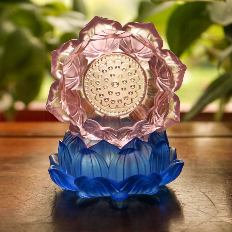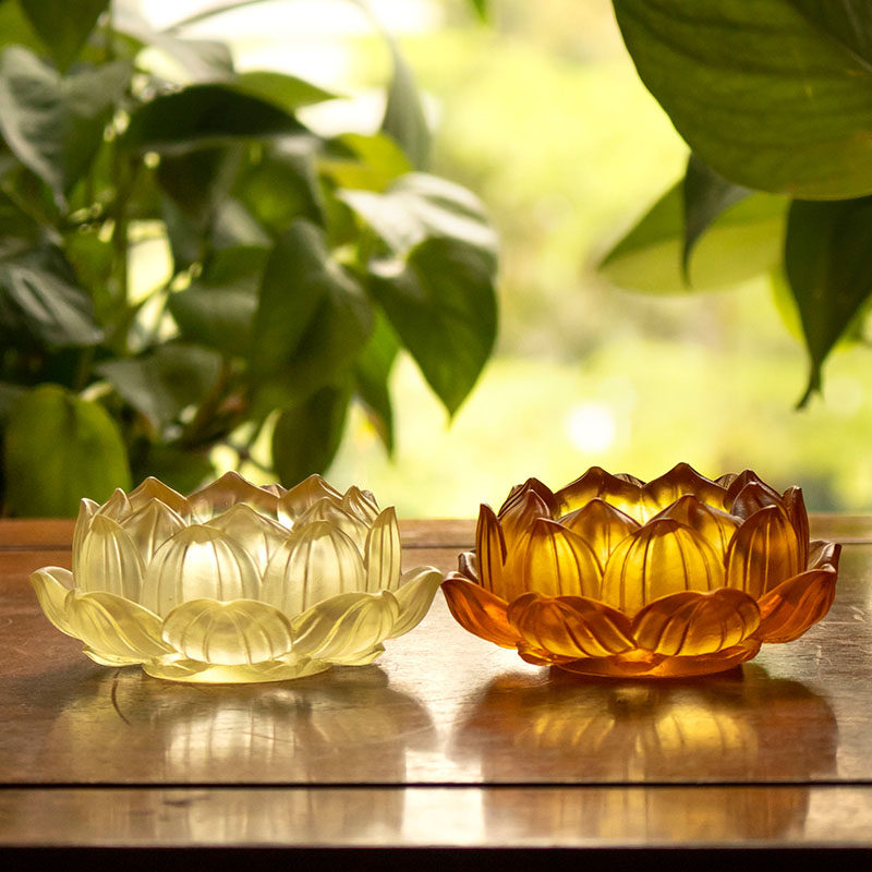 Ancient method glazed lotus candle holder for Buddha colorful butter lamp seat Buddha front lotus for lamp Buddha lamp home desktop decoration
