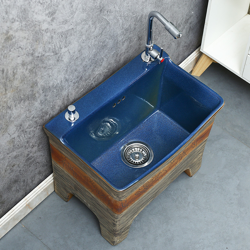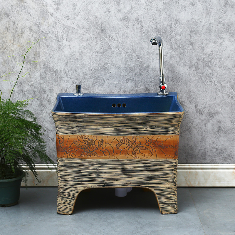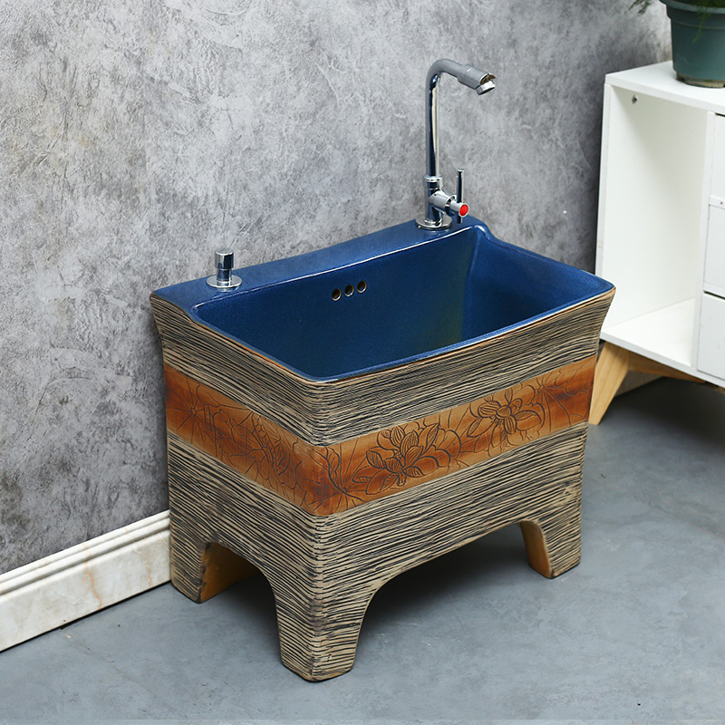 Retro mop pool household ceramic wash mop basin floor mop basin balcony dressing room large floor-standing mop pool