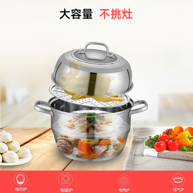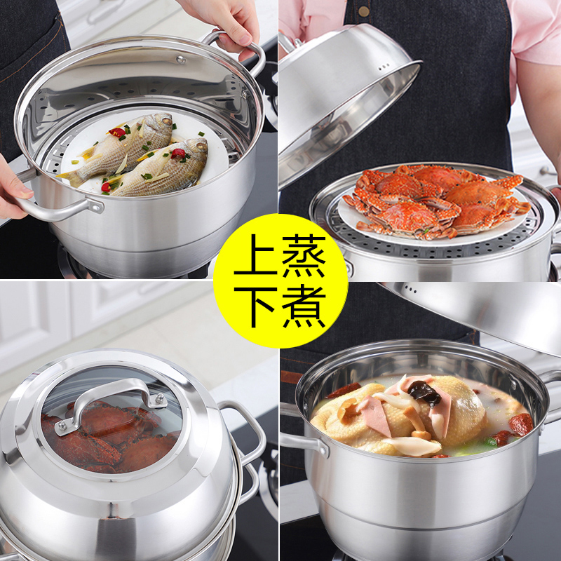 Steam boiler 304 stainless steel multilayer thickened domestic small double layer gas cooker with electromagnetic oven 2 layers of steamed steamed buns stuffed buns