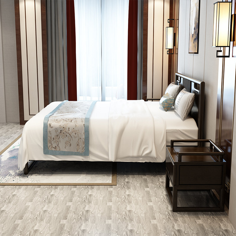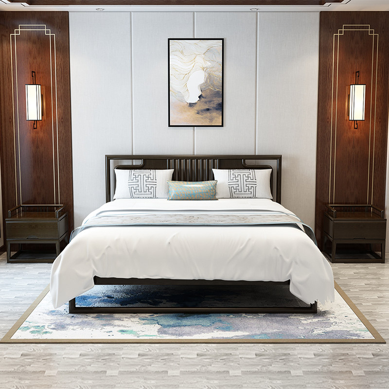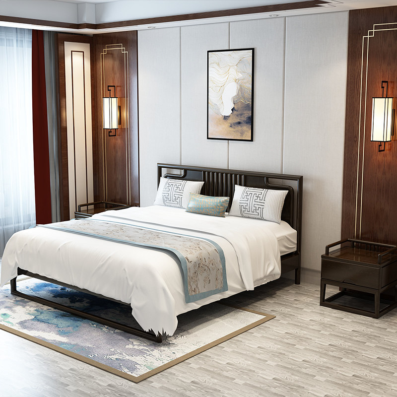 New Chinese solid wood bed double bed modern simple bedroom hotel model room 18 m big bed factory direct furniture