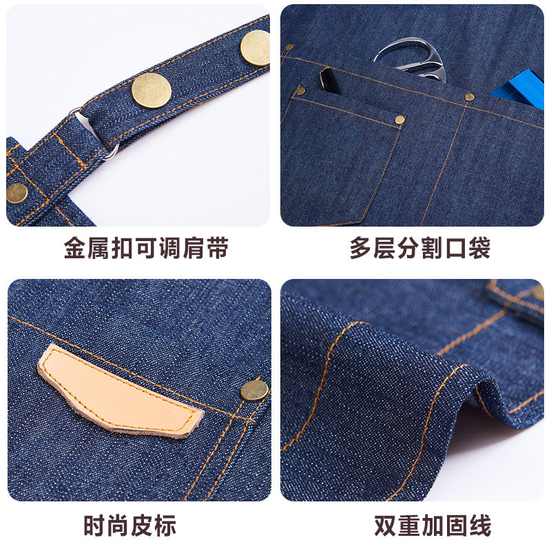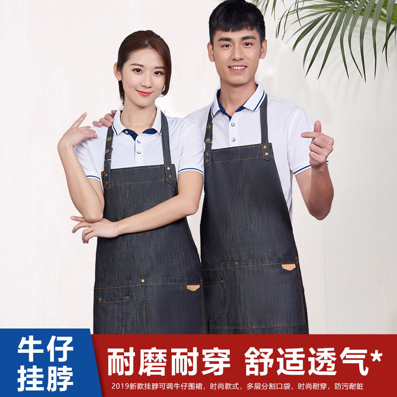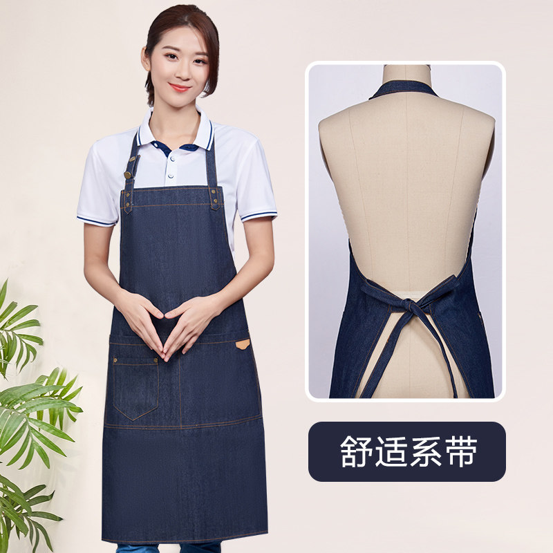 Beauty Hair Beauty Chia Hotel Denim Apron Working Apron Custom Print Logo Kitchen Abrasion Resistant Milk Tea Shop Apron for men and women