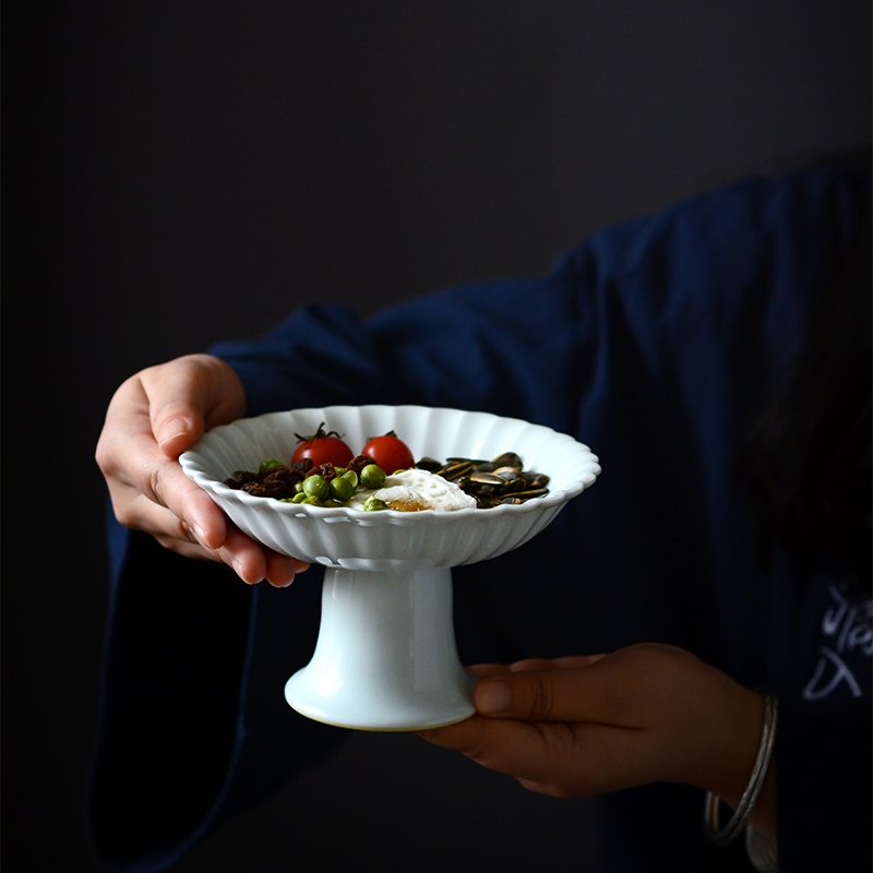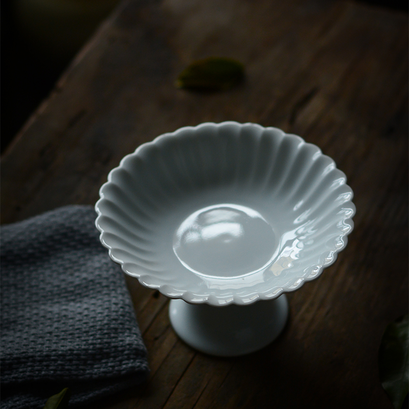 Imitation of the Yongzheng Year of the Qing Dynasty ceramic flower petal high foot plate pastry refreshment plate sushi swing plate high foot plate bergamot plate