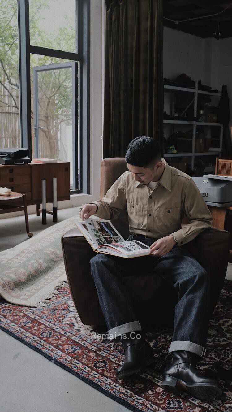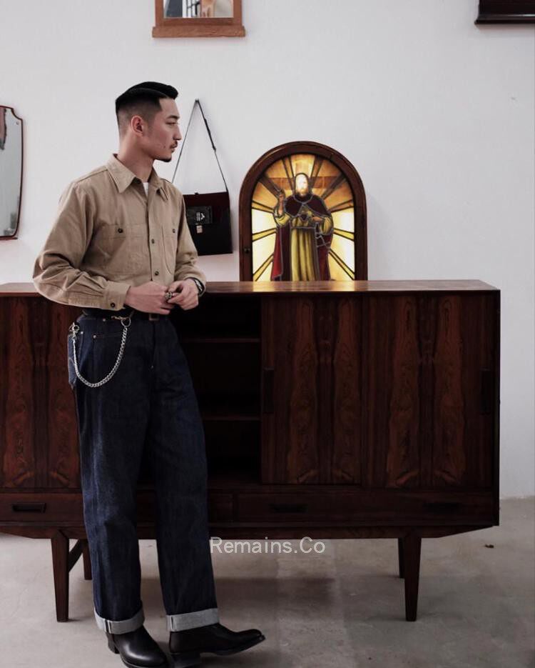 Remains 1920s strappy baby bag American cotton original high-rise straight-leg Parisian-button jeans