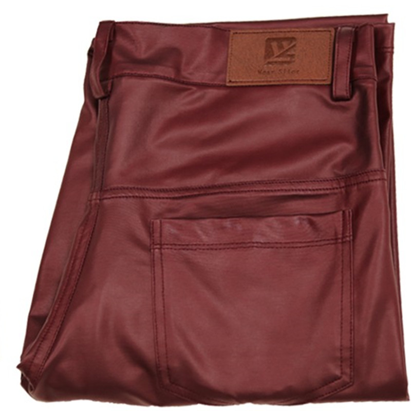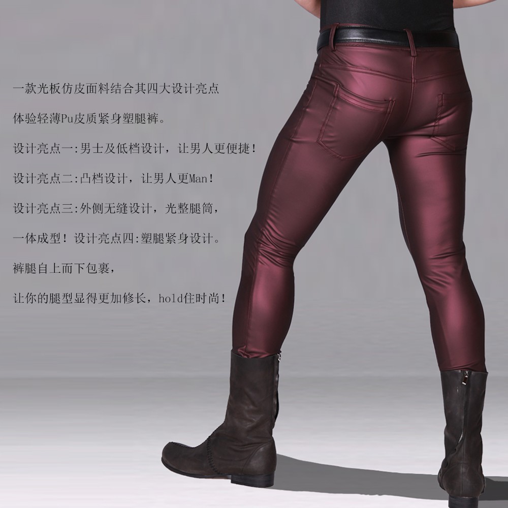 Male slim fit soft imitation leather pants elastic tight calf pants hairstylist male model Social Little Singer DJ Leather Pants