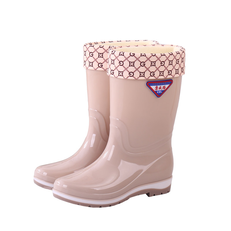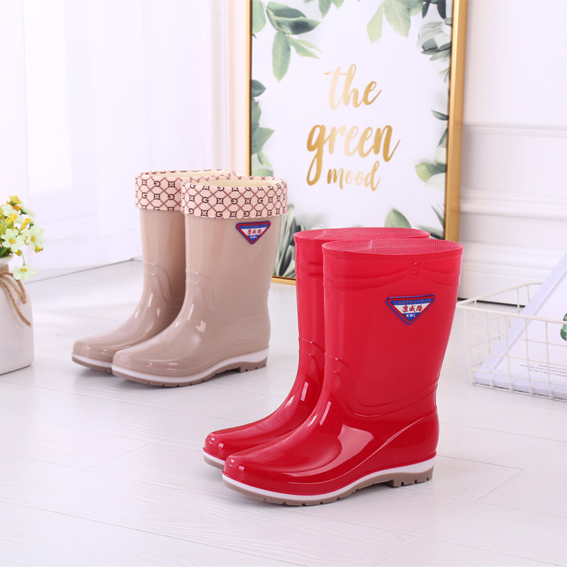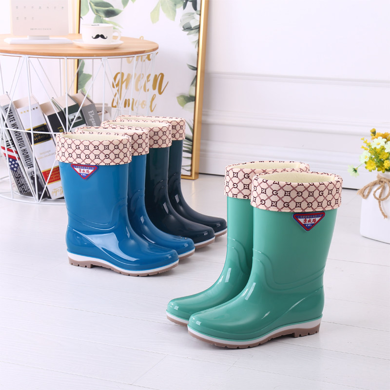 Gush Rain Shoes Lady Midtubes Warm Rain Boots Non-slip Women Style Water Shoes High Cylinder Rubber Shoes Adults Plus Cotton Water Boots Shoes