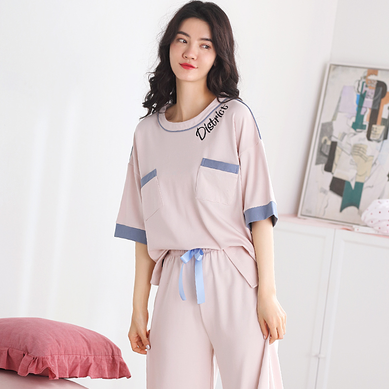 Pajamas Woman Summer Pure Cotton Short Sleeves Seven Pants Two Sets Cute Mesh Red External Wear With Chest Cushion Home Clothing Thin