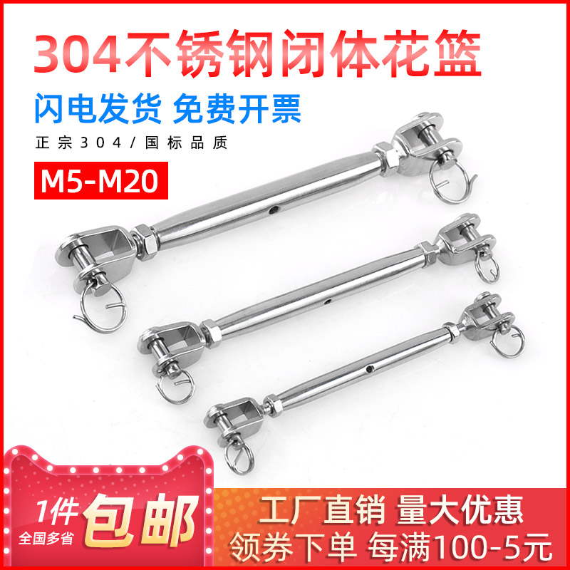304 stainless steel closed body flower basket tightener heavy rotary buckle tensioning screw tightener closed pull-tightener M5-20