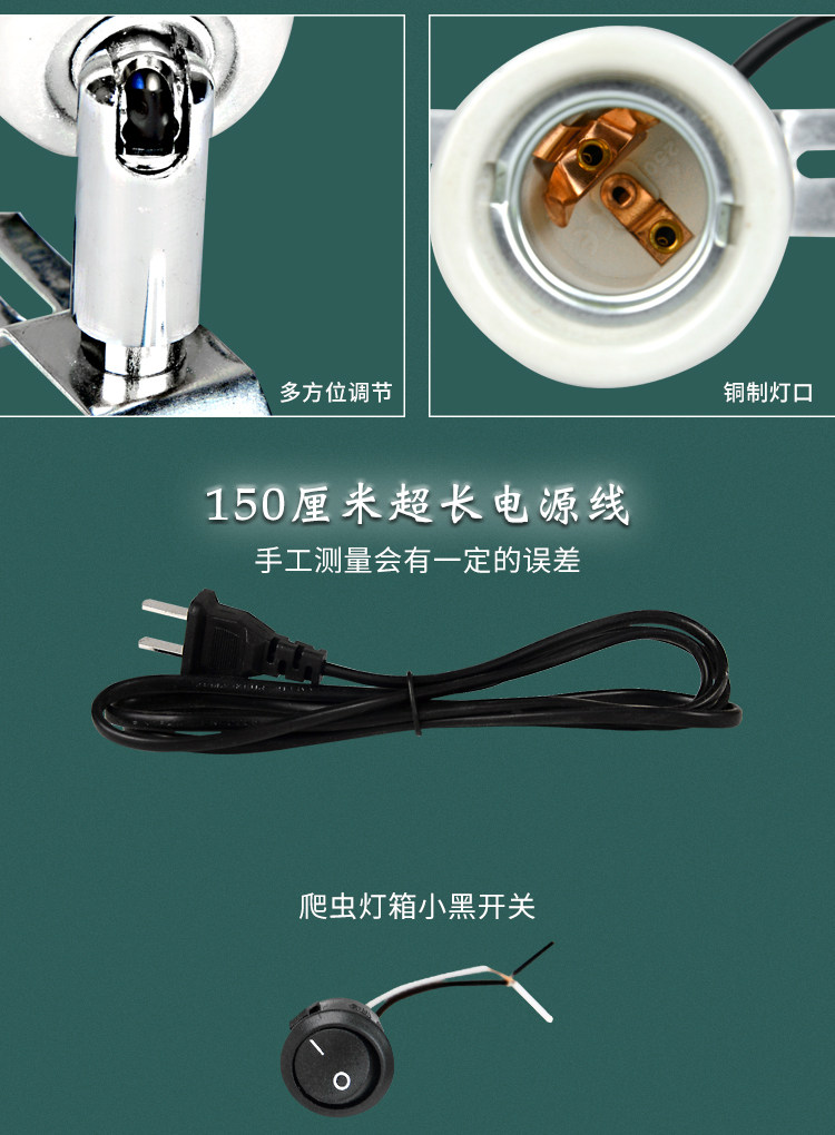 Climbing pet breeding box T8 lamp tube lamp frame ceramic lamp holder UVA lamp head UVB bulb accessories lamp port power cord universal