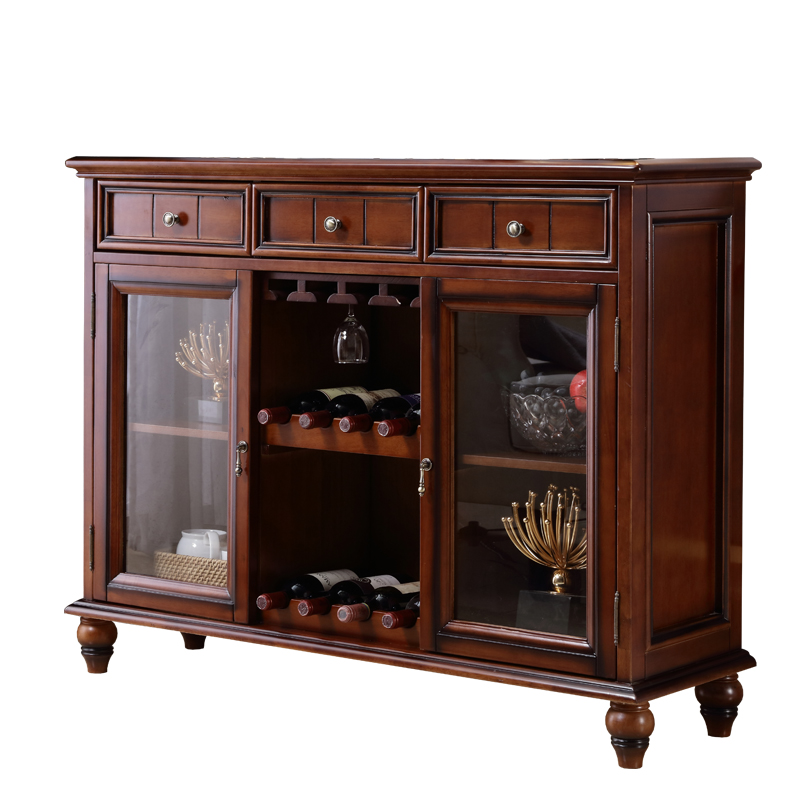 Solid wood new walnut color old simple dining cabinet American kitchen storage cabinet dining room storage cabinet cupboard cabinet wine cabinet