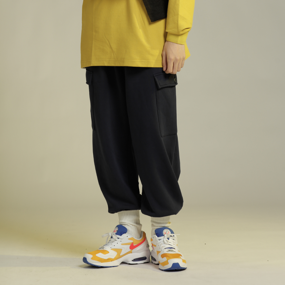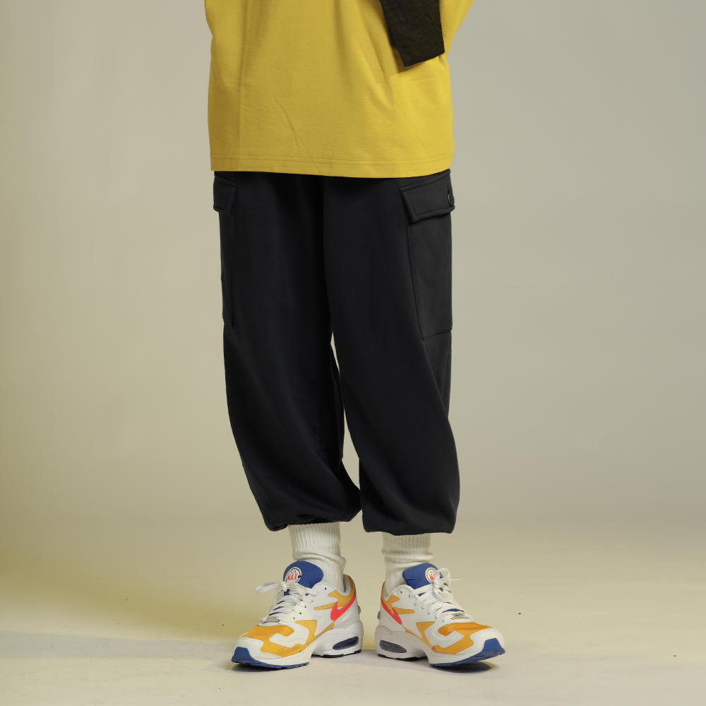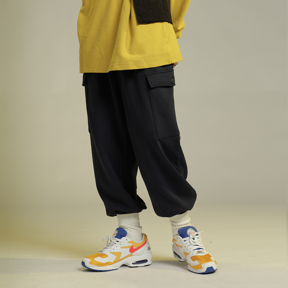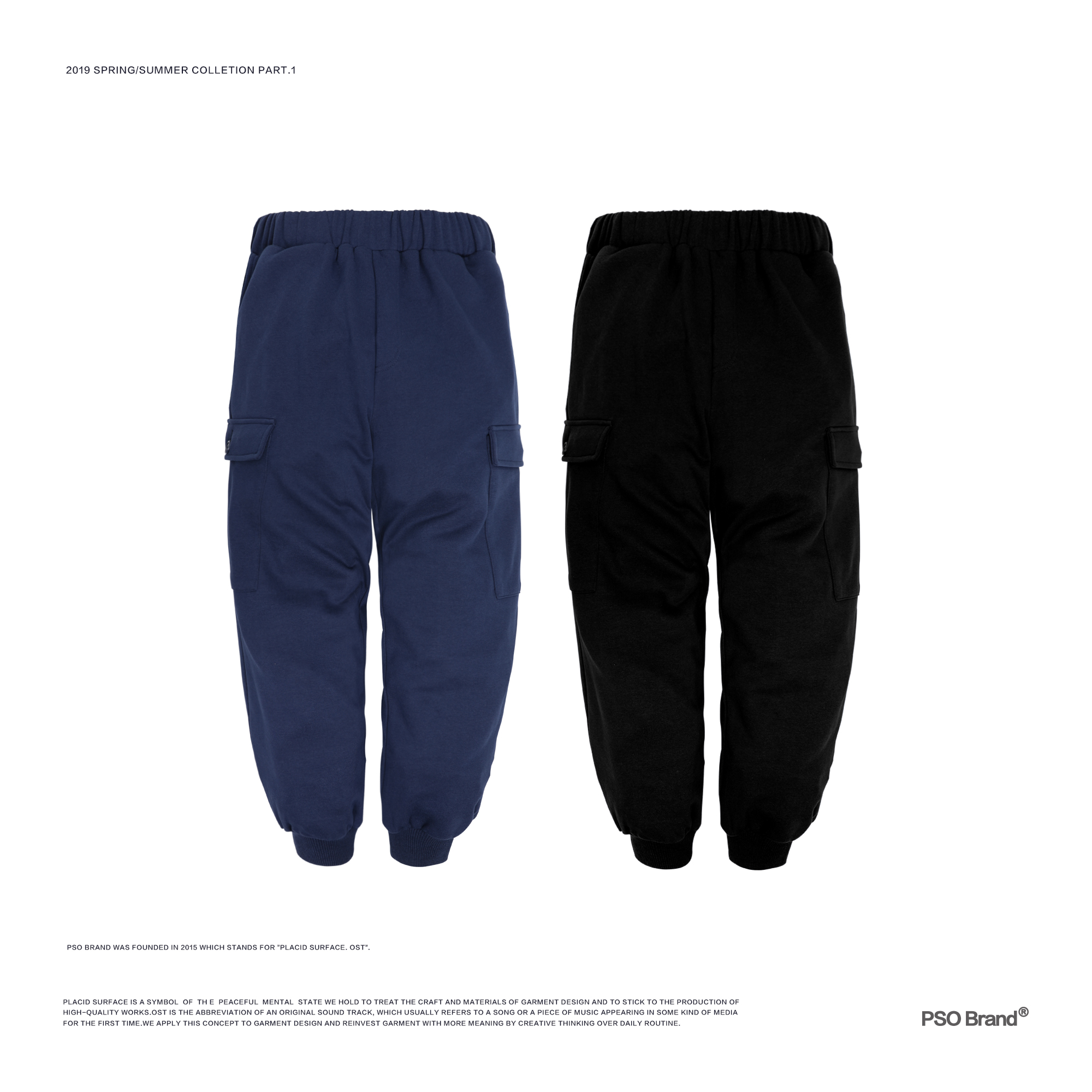 PSO Brand Solid color multi-pocket loose sweatpants Sports pants drawstring nine-point pants Men's slim cigarette tube pants tide brand