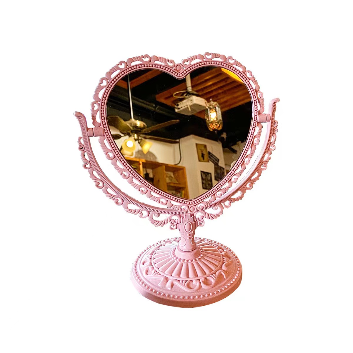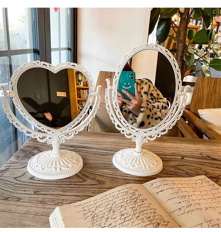 Nordic rice white 7 inch PVC double-sided oval mirror 7 inch PVC silver white lace pearl mirror 7 inch PVC silver powder lace pearl mirror 7 inch PVC silver jade green lace pearl mirror Nordic blue 7 inch