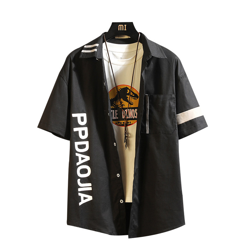 Fat work shirt short sleeve men loose large size slim handsome shirt Korean version half sleeve coat men summer
