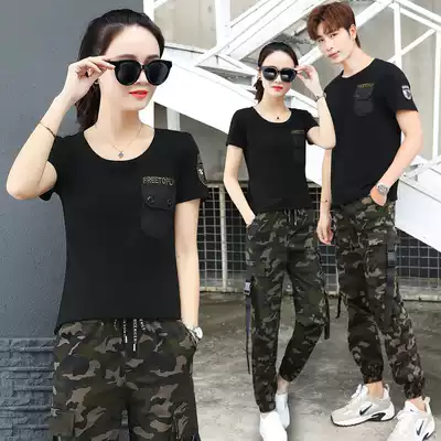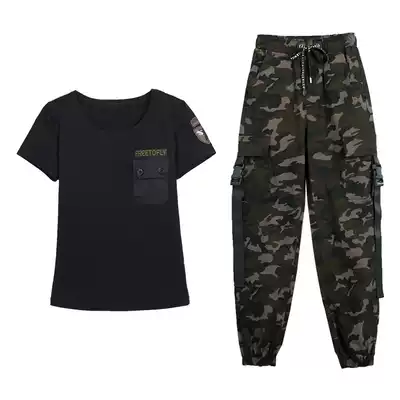 Camouflage suit Women's tooling pants Summer pure cotton short-sleeved T-shirt camouflage trousers fashion casual sports two-piece suit