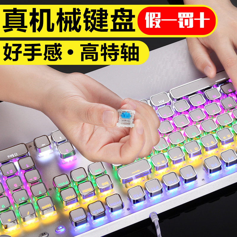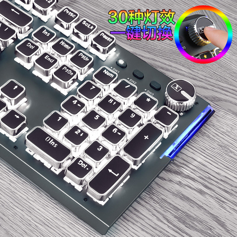 Xinmeng real mechanical keyboard Green shaft black shaft pluggable shaft Steampunk Metal backlit laptop desktop computer external office USB cable e-sports game eating chicken Net Red Net Cafe