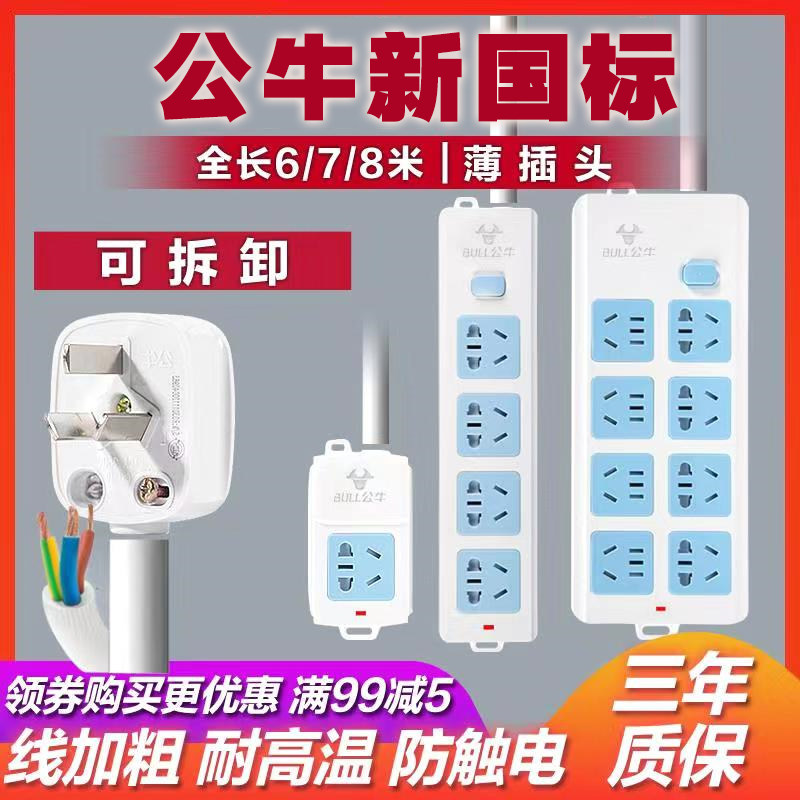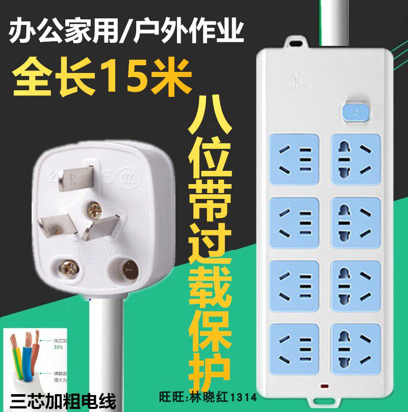 Bull socket plug row plug with wire Power wiring board 6 7 8 meters long detachable extension cable Extension cable