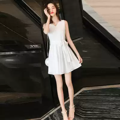 Fashion high-end chiffon dress women Summer belly French light luxury lace dress foreign pie a small white skirt skirt