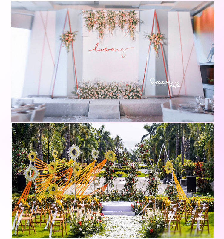 New wrought iron triangle decorative door wedding props background Geometric arch special-shaped door floral arrangement Mori T