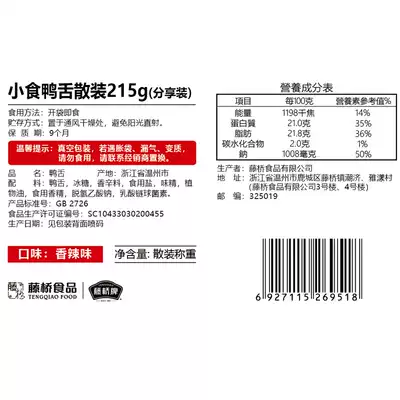 (Recommended by the anchor) Tengqiao Wenzhou specialty duck tongue Net red snacks Lo-flavor casual snacks 215g