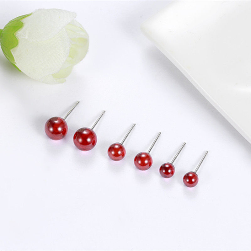 Straight needle 4MM red pomegranate stone earshot pair (somewhat small) straight needle 8MM red pomegranate stone ear needle pair of bent crochet needle 6MM red pomegranate stone ear needle pair of bent crochet needle 4MM red pomegranate stone ear pin