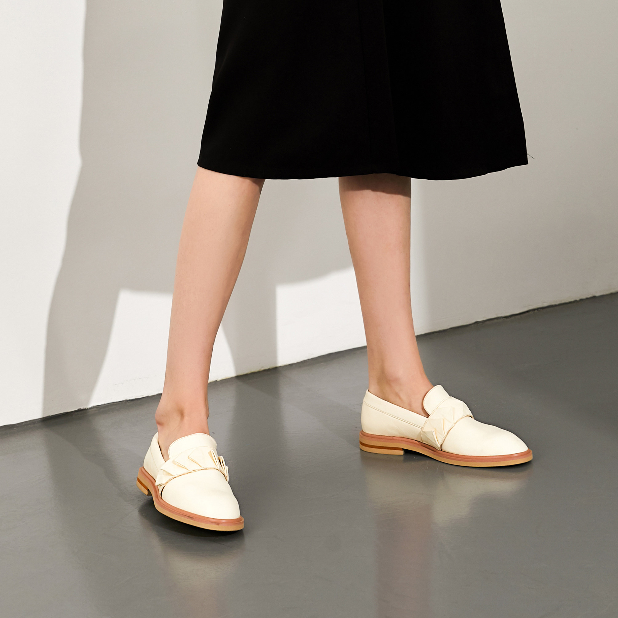 Niche designer brand four seasons leather small white shoes lazy loafers British style folding paper single shoe derby shoes