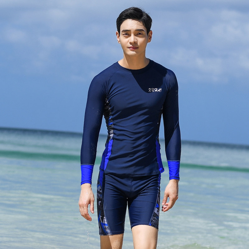 2021 new split swimsuit men's swimsuit suit sunscreen short-sleeved boxer shorts teen big child student
