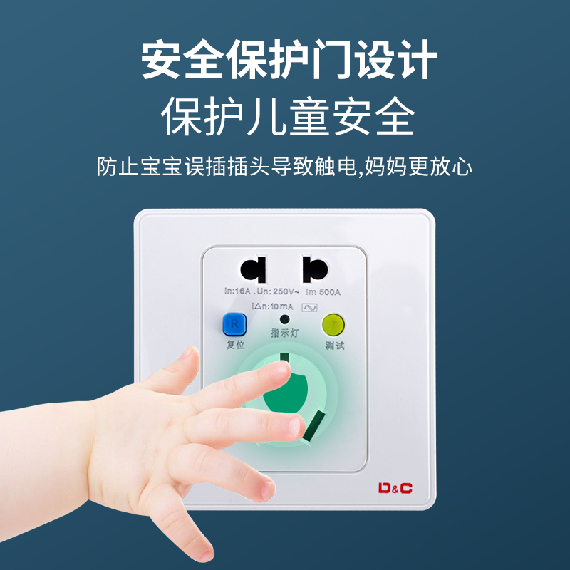 Shanghai Delcy Switch Five-hole 16A10A with switch socket Home electric water Air conditioning leakage protector