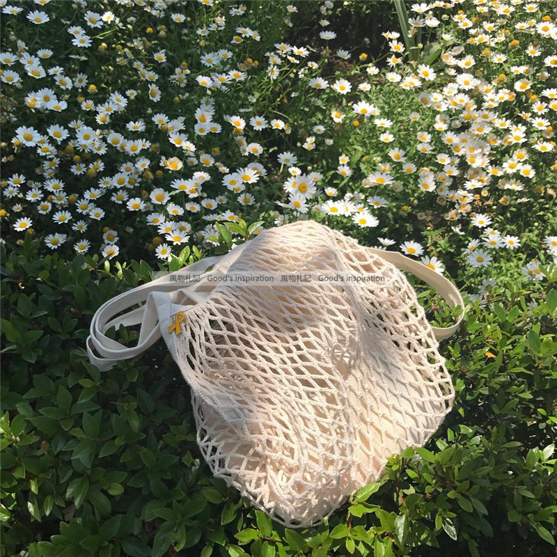 Woven mesh bag shopping bag pure cotton mesh bag fruit and vegetable hand shopping bag environmental protection hollow shoulder handbag