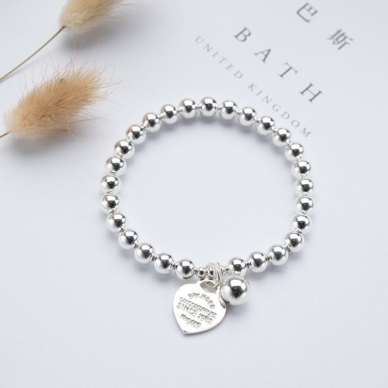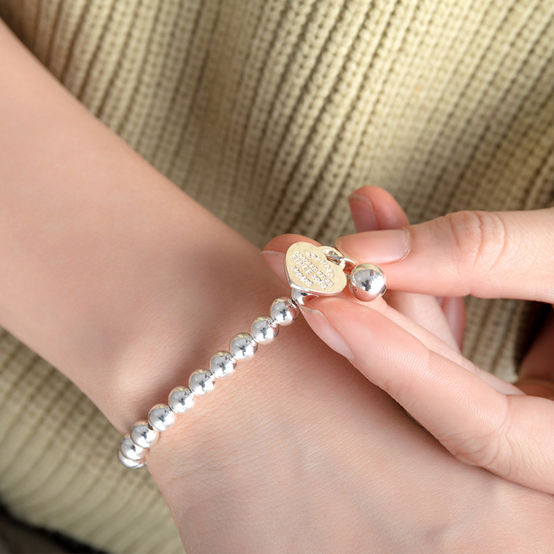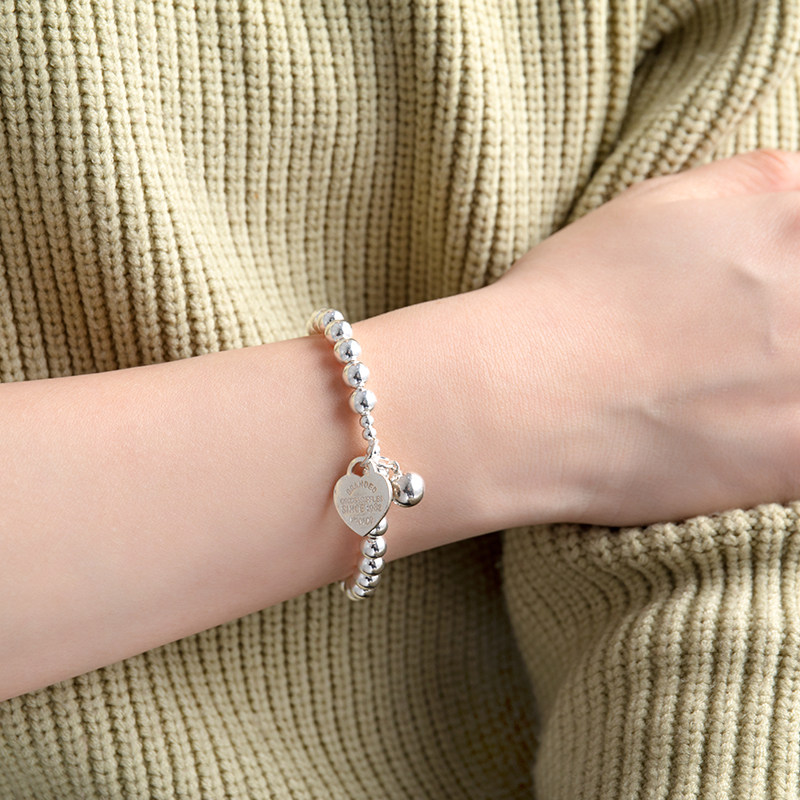 S925 pure silver original loving card silver beads handmade female Korean version Jane about personality Peach Hearts Strings of Valentine's Day
