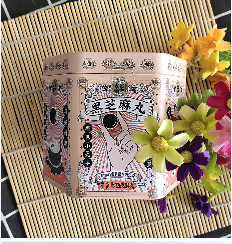 Buy 1) 1) Old gold milling square black Sesame Balls Old Gold Mill Sesame Balls Mulberry Balls Mulberry Balls 126g Iron box Loaded Sesame Balls