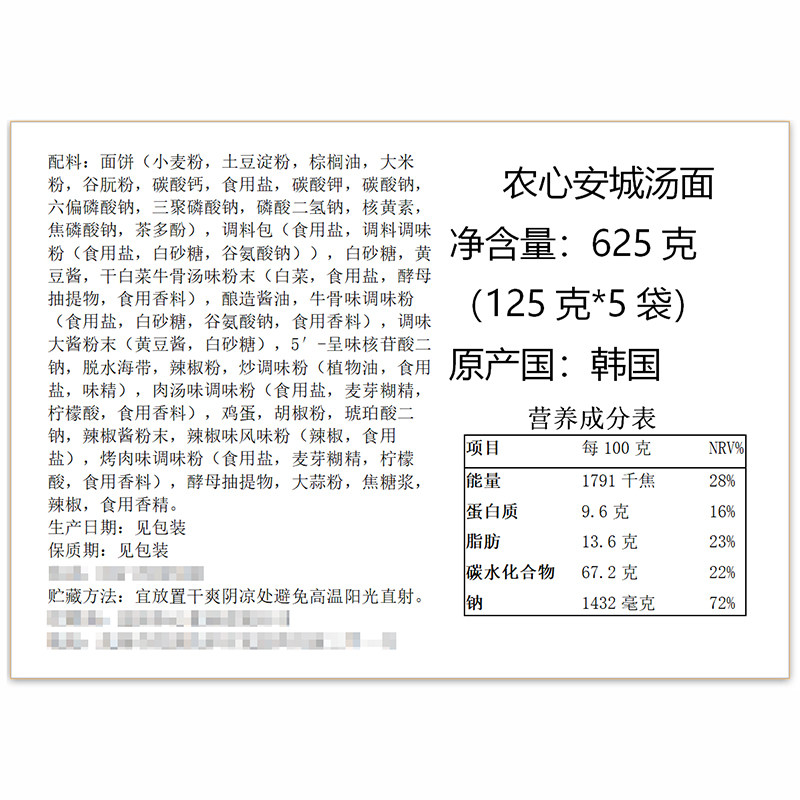 South Korea imported Nongxin Ancheng noodle soup 125g*5 bags Net red instant noodles boiled noodles, instant noodles slightly spicy spicy noodles