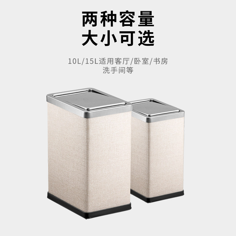 Powder room trash can shake with lid home living room bedroom toilet light luxury style rectangular stainless steel oversized garbage