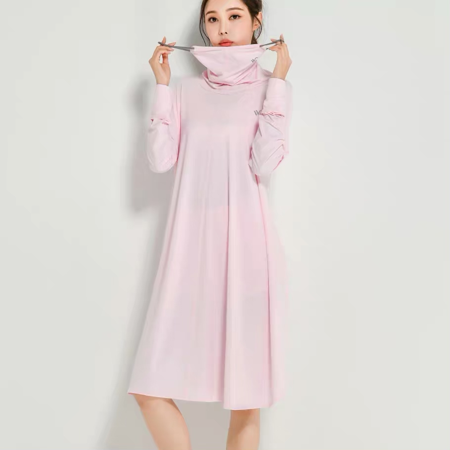 South Korean VVC riding hooded sunscreen women's summer outdoor breathable thin medium long version of anti-UV shading shawl