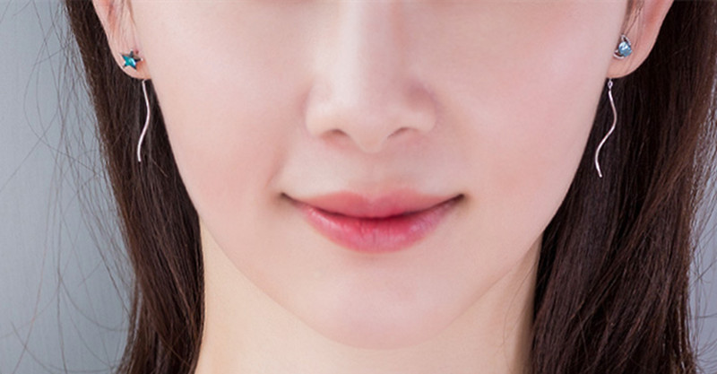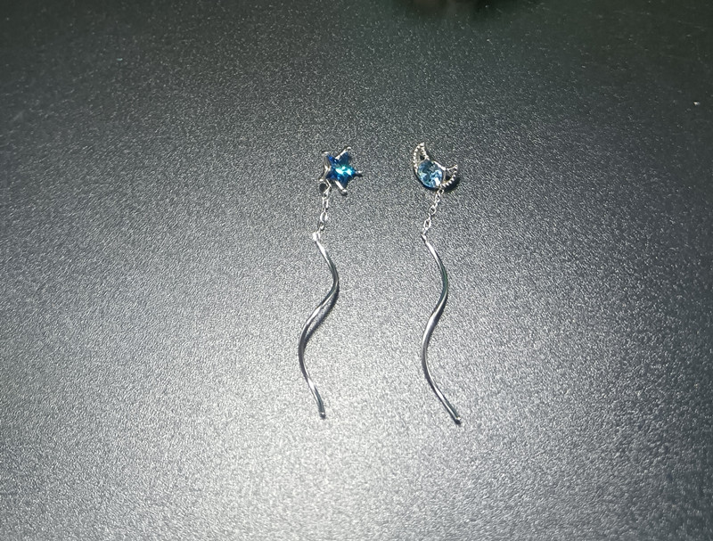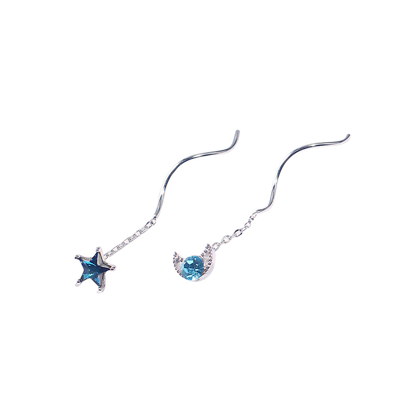 s925 Silver Blue Drilling Five-pointed Star Moon Ear Necklace Women Inlaid Drilling Flow Suearrings Shorts Net Red Small Earrings Supersens
