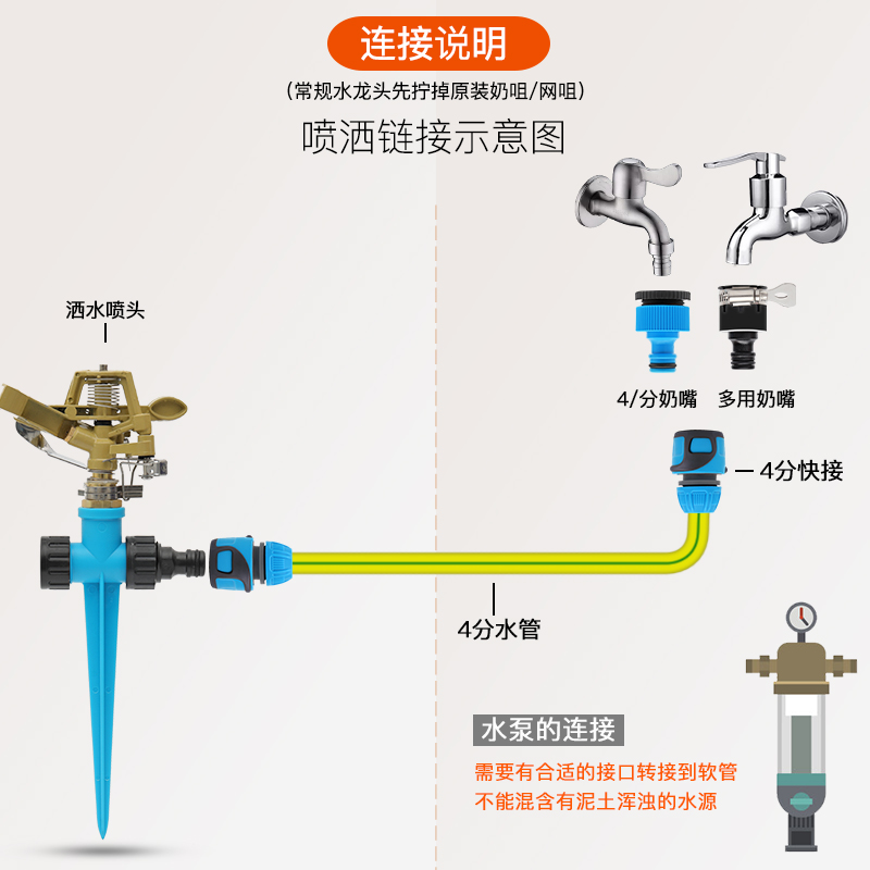 Agricultural irrigation sprinkler rotates 360 degrees automatic sprinkler agricultural green sprinkler lawn garden watering