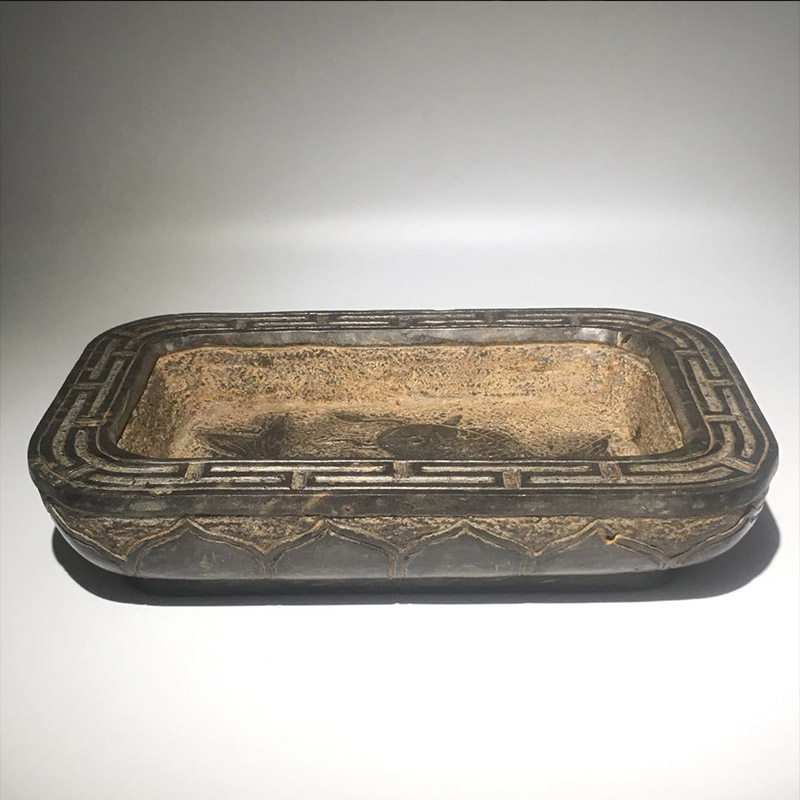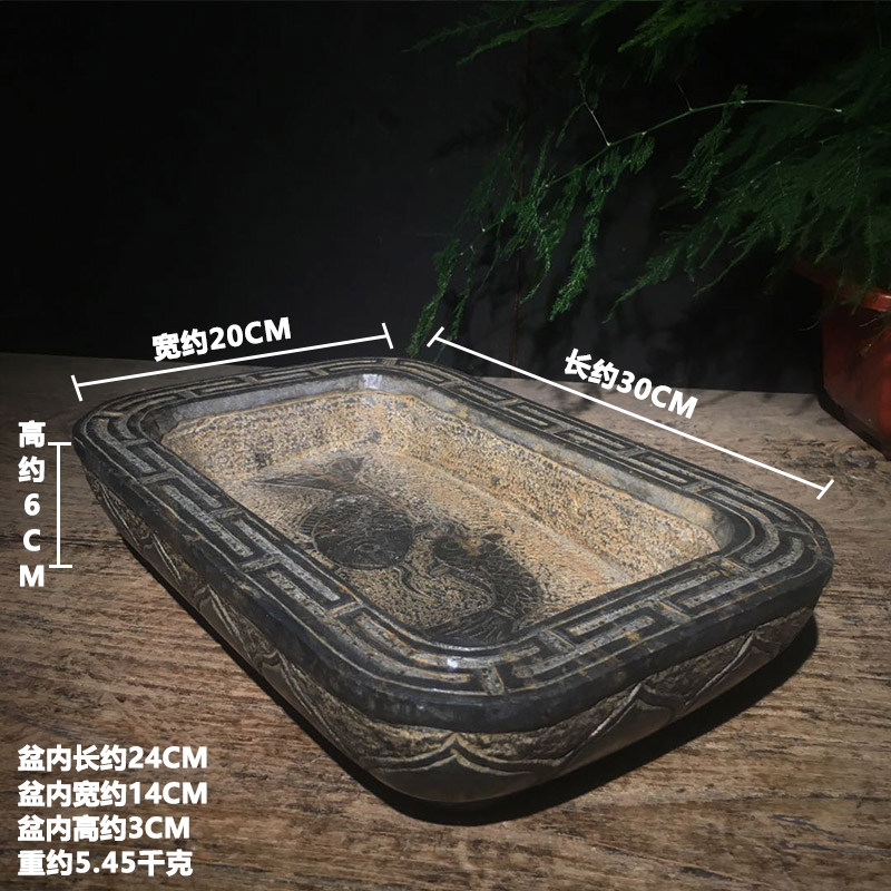Shanxi Qingshi Antique Antique Old Stone Carving Paleolithic Antique Lotus Fish Pot Retro Furnishing Flower Pot Wenwan Collection