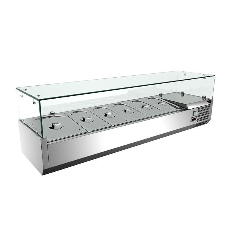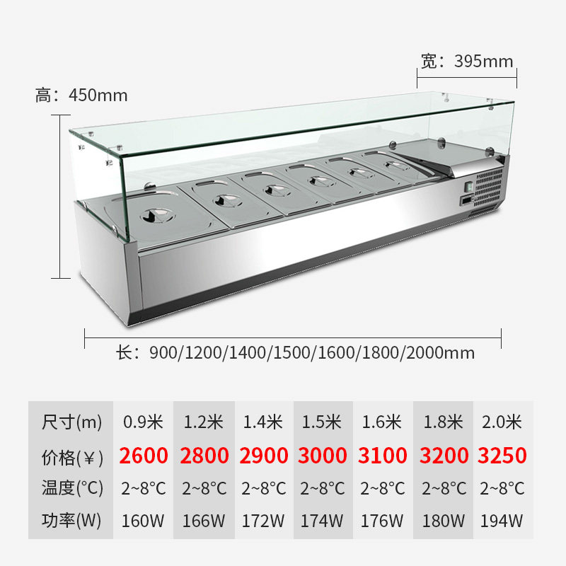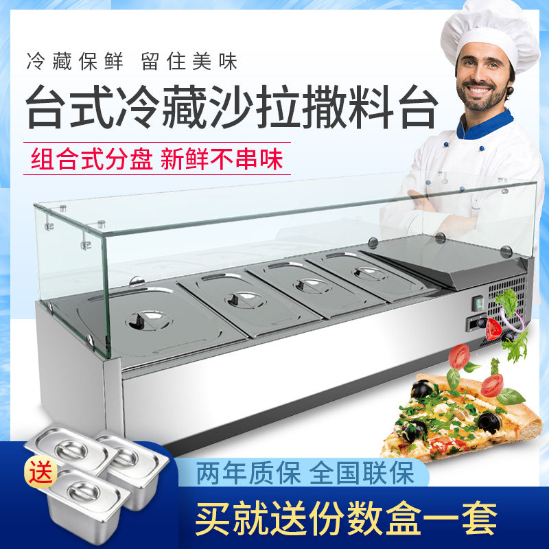 Commercial desktop refrigerated pizza table commercial dessert refrigerator refrigerated salad spreader glass cover pizza table