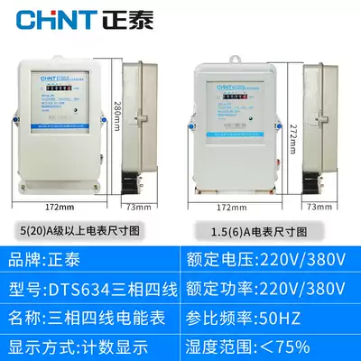 Zhengtai three-phase four-wire electric meter DTS634 fire meter 100a transformer meter 380V electric meter Three-phase energy meter