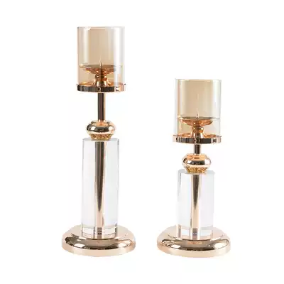 European style candle holder model room decoration metal crystal simple modern villa hotel table golden ornaments