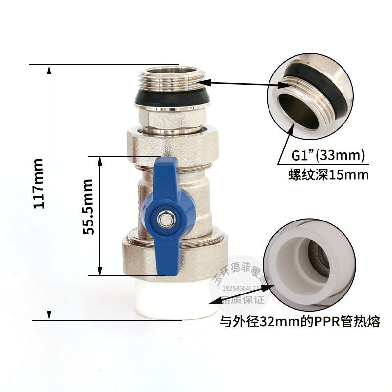 PPR25 PPR32 straight ball valve All copper 1 inch inside and outside the wire valve connected to the diverter supervisor switch