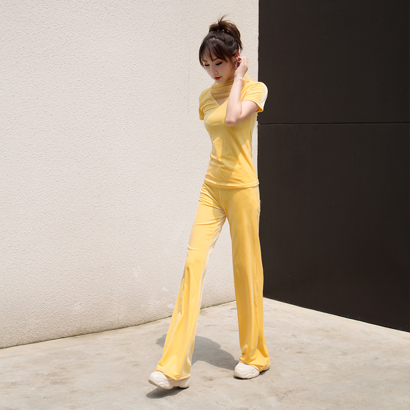 Gold velvet sports suit women's summer fashion 2022 new temperament goddess high waist trousers casual wear two-piece set