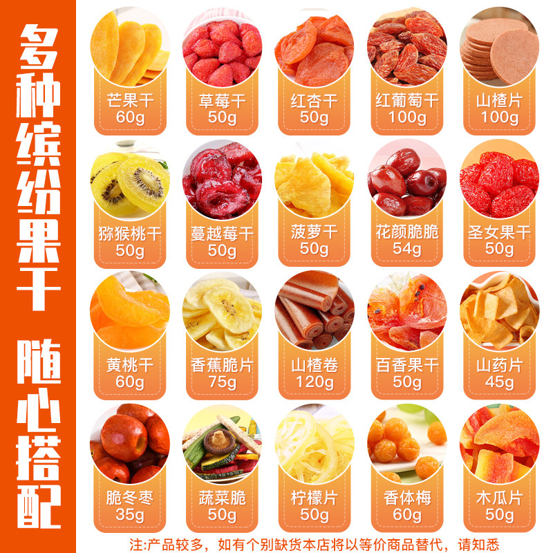 Kiwifruit 50g Saint-female fruit 50g red and crisp date 54g Mans 60g St women's fruit 50g Chips 50g Cranberry 50g Red Grapes Dry 100g Kiwi pick