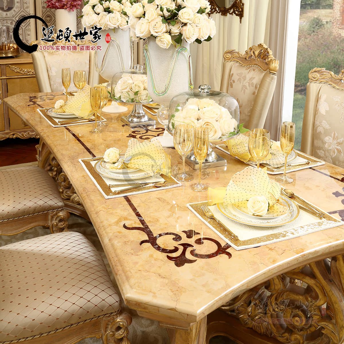 Luxury Villa Daping number European French neoclassical palace solid wood carving dining room furniture soft bag fabric dining chair