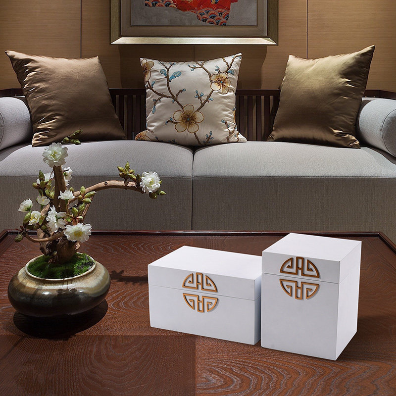 New Chinese white simple jewelry box decoration Sales office hall partition cabinet Solid wood storage box Soft decoration