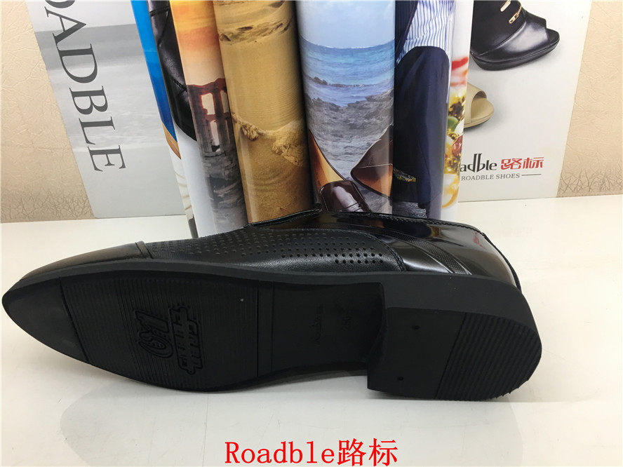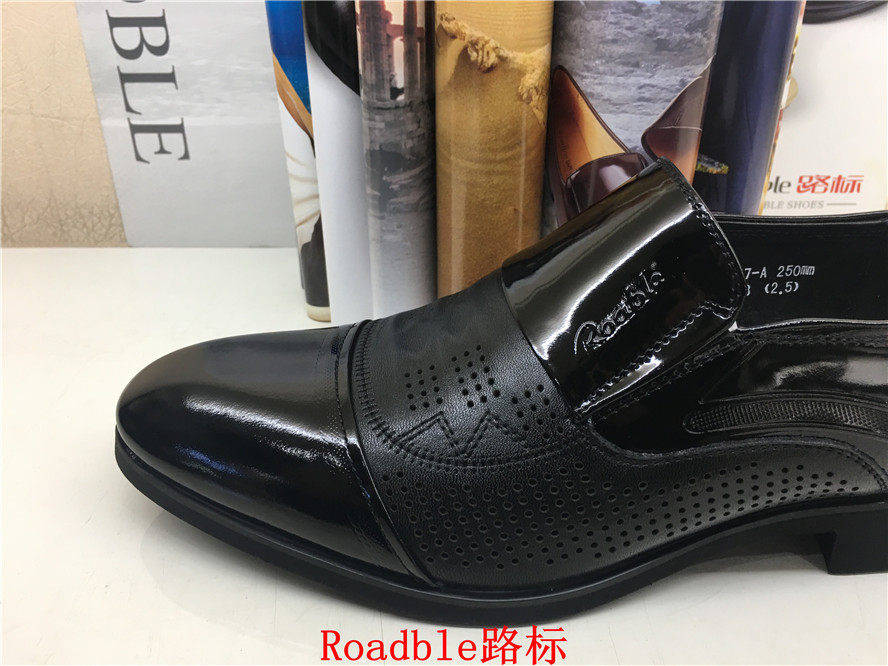 Road signs leather fashion bright patent leather business genuine pointed toe set feet punching breathable summer sandals men's leather shoes